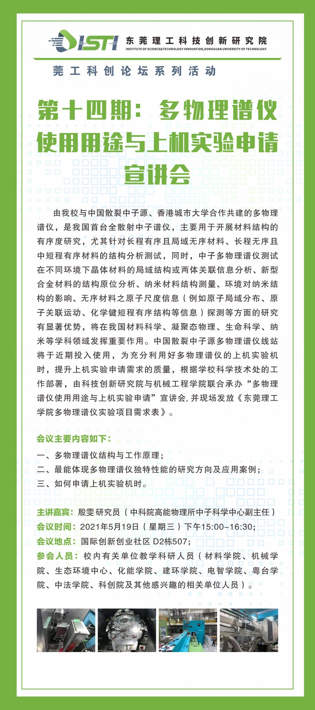 莞工科创论坛|第十四期:多物理谱仪使用用途与上机实验申请宣讲会