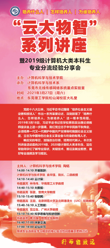 【讲座预告】“云大物智”系列讲座暨2019级计算机大类本科生专业分流经验分享会