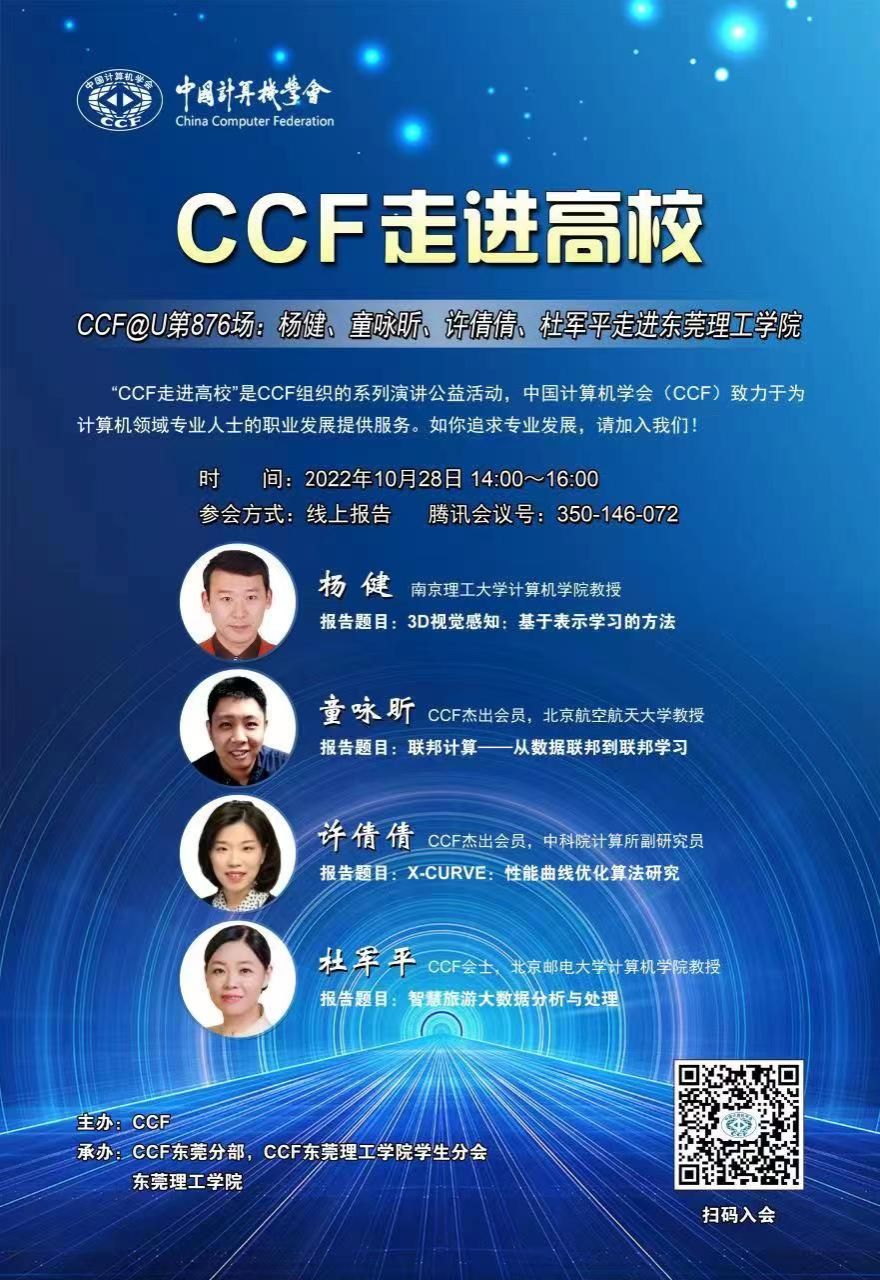 学术预告|CCF走进高校 CCF@U第876场:杨健、童咏昕、许倩倩、杜军平走进开云kaiyun官方网站