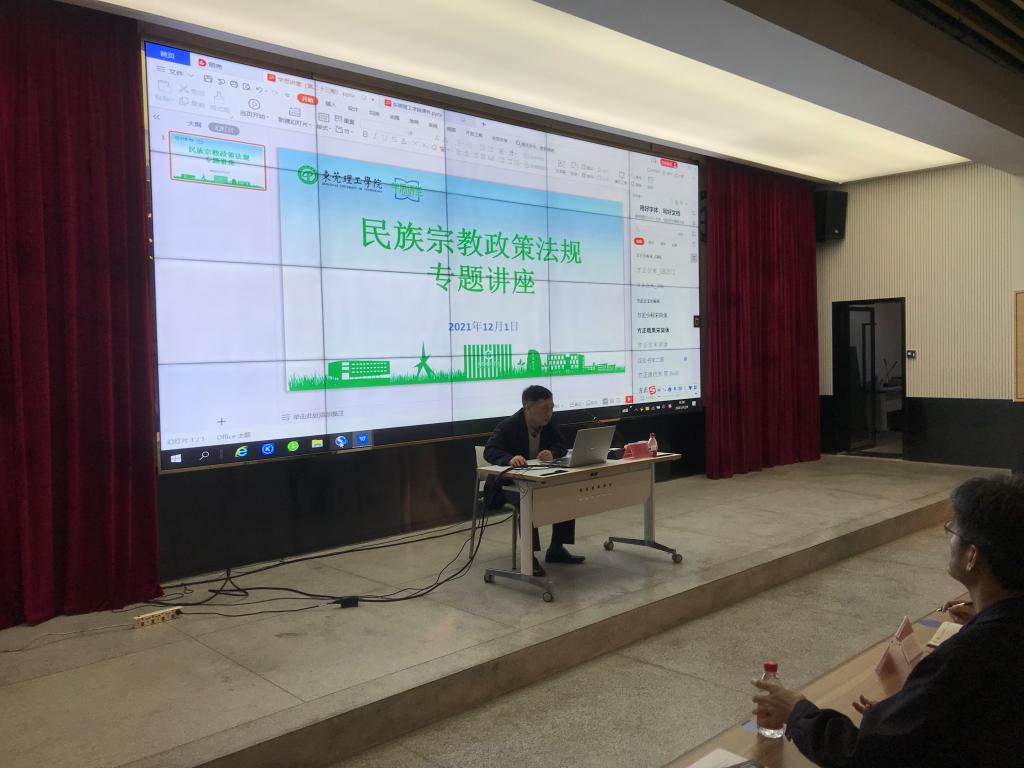 12月1日上午,学校在学生活动中心举办民族宗教工作专题辅导培训会。会议邀请省民族宗教研究院宗教研究所所长余庆斌,以“民族和宗教政策法规解读”为主题作专题辅导报告。
