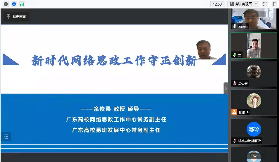 讲座中,余俊渠教授从网络思政工作的“时代性”“创新性”“实践性”“示范性”等四个方面展开分享。余俊渠教授指出,学校要牢牢掌握意识形态工作领导权和主导权,依托“易班”平台,主动占领网络思想政治教育新阵地,使之成为弘扬主旋律、传播正能量、讲好中国故事的重要举措。而作为高校辅导员,需要提高运用新媒体技术手段开展思想政治教育工作的能力,在实际工作中把网上的舆论引导和网下的思政教育工作结合起来,在实践中需要创新网络思想政治教育形式,走入学生的内心,了解学生所思所想,才能乘风破浪,真正让思想政治教育变得鲜活生动。余俊渠教授的讲授既有理论的深度解读又有案例的生动分享,使在场的学工人员对网络思政工作有了新的思考和更加深入的认识和理解。