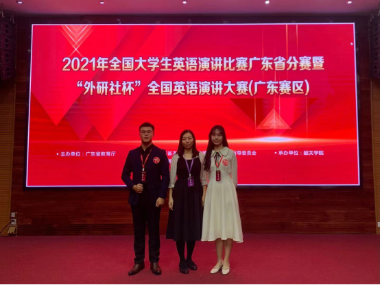11月6日,2021年全国大学生英语演讲比赛广东省分赛、“外研社杯”全国英语演讲、写作、阅读大赛(广东赛区)在韶关学院举办,来自全省66所高校600余名选手同台竞技。开云文传学院卓越教研室主任刘瑾老师、江倩虹博士带队参赛。