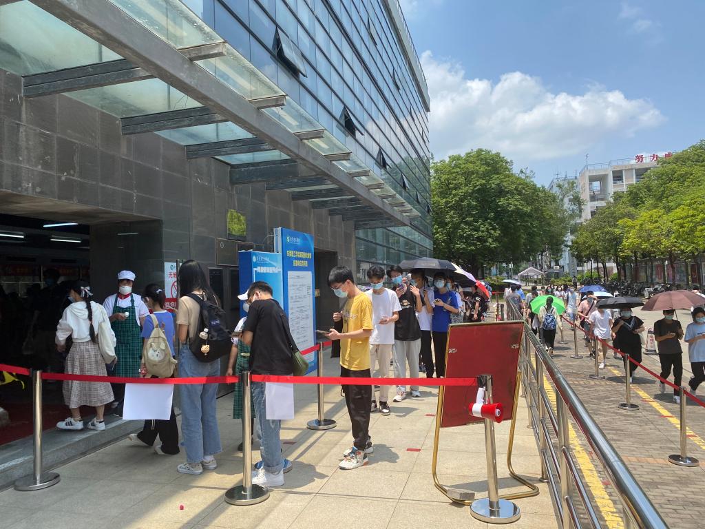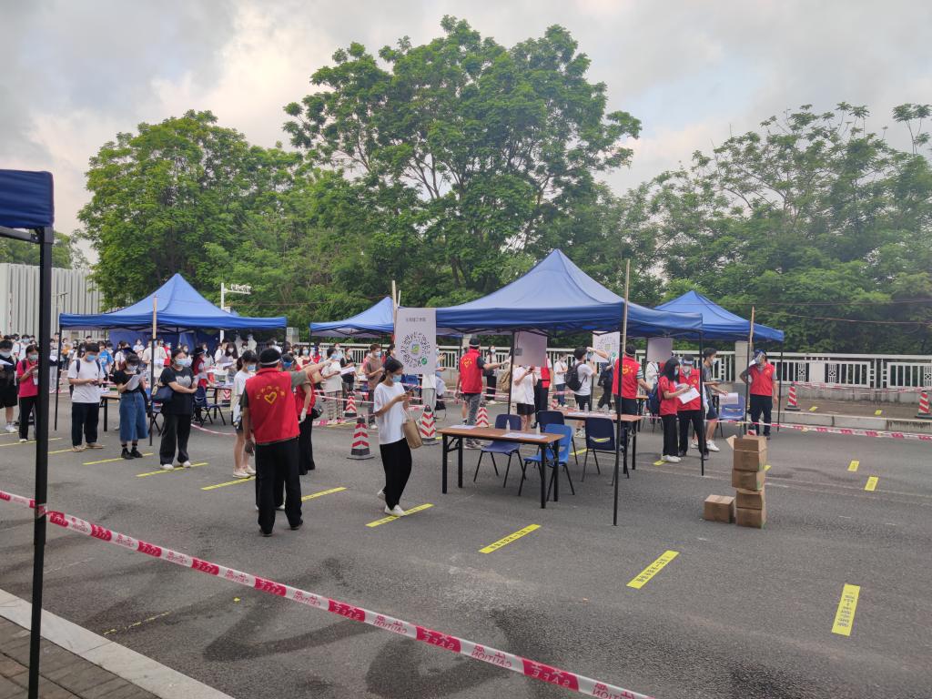 做好应急需求准备工作。为进校考生提供临时饮用水、文具售卖点,做好基础物资供应;为忘记携带健康申报表的考生提供备用表格;为备用隔离考场考生提供送餐及考后核酸检测服务;考试全程密切关注考生动态,对临时合理需求快速反应,力求为考生提供优质服务。