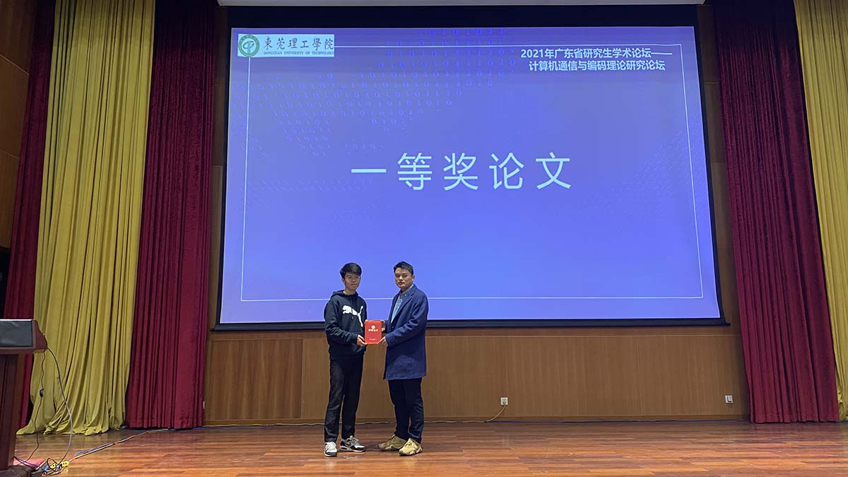 最后,温金明教授对论坛做了总结,他表示这次论坛群英荟萃,围绕计算机科学与技术、通信与信息系统的学术论坛主题报告对研究生的培养工作和科研学术水平能力都具有积极的促进意义。本次论坛共设10个奖项,分别是优秀论文奖1名,一等奖论文3名,二等奖6名。经论坛学术委员会评审,来自中山大学的王千帆同学获得优秀论文奖;来自广东工业大学的彭泽鑫同学、华南理工大学的牛畅同学、暨南大学的何红雨同学获得一等奖;来自深圳大学的吴丹洲同学、清华大学的姜峥艺同学、华南理工大学的蔡伟杰同学、北京科技大学的苏日娜同学、北京工业大学的苏玉钊同学、开云kaiyun官方网站的杨锦同学获得二等奖。温金明教授宣布了获奖名单,同时向获奖同学表示祝贺,侯韩旭教授为获奖同学颁发证书并对论坛进行闭幕式致辞。