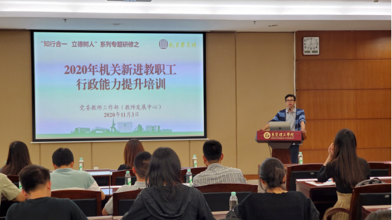 11月3日晚,党委教师工作部在学校学术会议中心306会议室开展了“知行合一,立德树人”系列专题研修暨第二期机关学习坊之2020年机关新进教职工行政能力提升培训。校党委教师工作部副部长曾鹏举、材料科学与工程学院党委副书记陈礼明、学校办公室行政科副科长李云三位老师分别从提升办文、办会、办事能力三个方面对50多名机关新进教职工进行了培训。