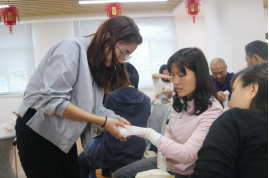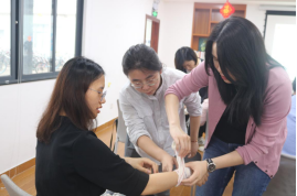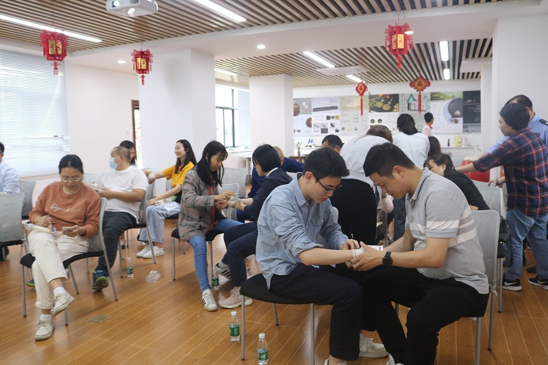 学员们在培训师的指导下,进行心肺复苏实操练习,掌握心肺复苏的基本环节和要领;学习绷带、三角巾的使用方法。大家纷纷表示,本次应急救护培训内容非常实用,对于日后参与到应急救护中大有裨益。
