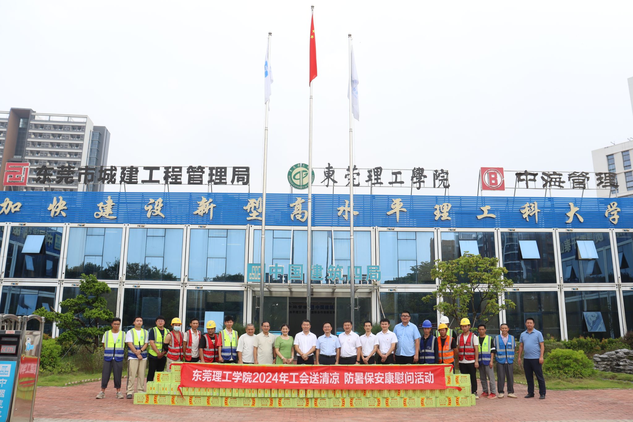 近日,校工会到高水平理工科大学国际合作创新区项目开展“夏季送清凉 防暑保安康”活动,为施工工人送上防暑降温物品。