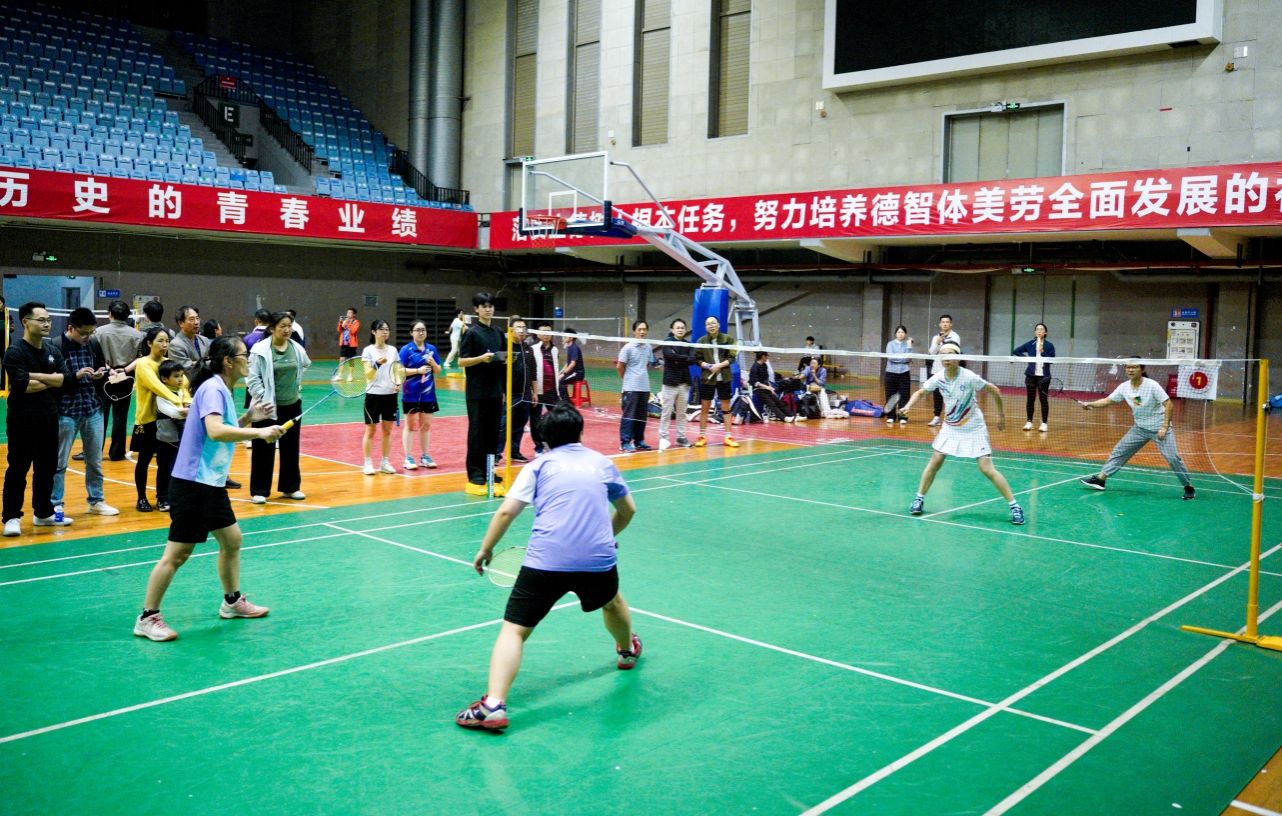 本次比赛采用混合团体赛形式,包括百岁男双、混双、女双、男单、男双等项目,吸引了来自各部门、各学院近百名教职工参与,充分展现了羽毛球运动的多样性和趣味性。比赛现场气氛热烈,年轻教职工活力四射,资深教职工沉稳老练,为观众呈现了一场场精彩的比赛。