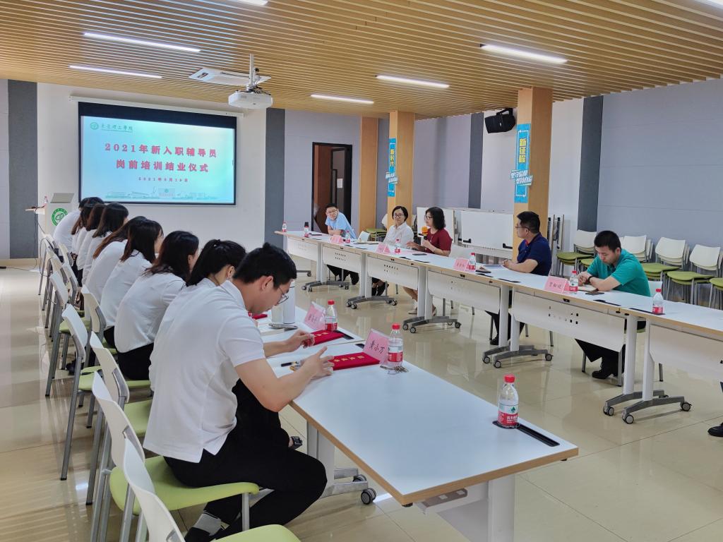 3月15日,2021年新入职辅导员岗前培训结业仪式在学生中心举行。党委教师工作部、党委学研工部、团委、就业中心、知行学院相关负责人以及新入职辅导员岗前培训班学员参加了结业仪式。党委教师工作部部长何献青和党委学研工部部长、学生处处长黄金和为12名新入职辅导员颁发了岗前培训结业证书。