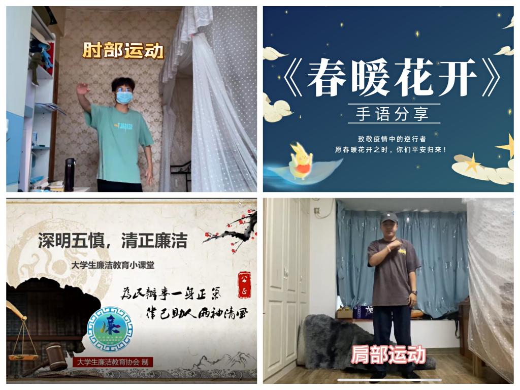 三月以来学校也策划了多元创新的系列线上文化活动,丰富同学的居家生活。学生会推出了“‘疫’展青春,想唱就唱”线上歌唱比赛,为广大爱好音乐的同学们提供展示自我、唱响青春的平台。学生社团发展中心面向各学生社团举行了“同‘屏’抗疫,跟着肥龙做志愿”“肥龙精品课”等活动,展示学生社团的志愿服务动人瞬间,也鼓励学生社团和在家的同学们分享兴趣爱好。心理健康教育与咨询中心举办了线上团体手语舞教学,带领同学们在舞蹈中放松身心。“莞工青年”新媒体矩阵连续推出了《莞工声浪丨守护这个春天的,有他们》《战疫日记丨认出护目镜下的肉肉了嘛》等有趣有意思有故事的线上正能量推文,讲好莞工青年故事,也及时为广大师生提供疫情防控的资讯。