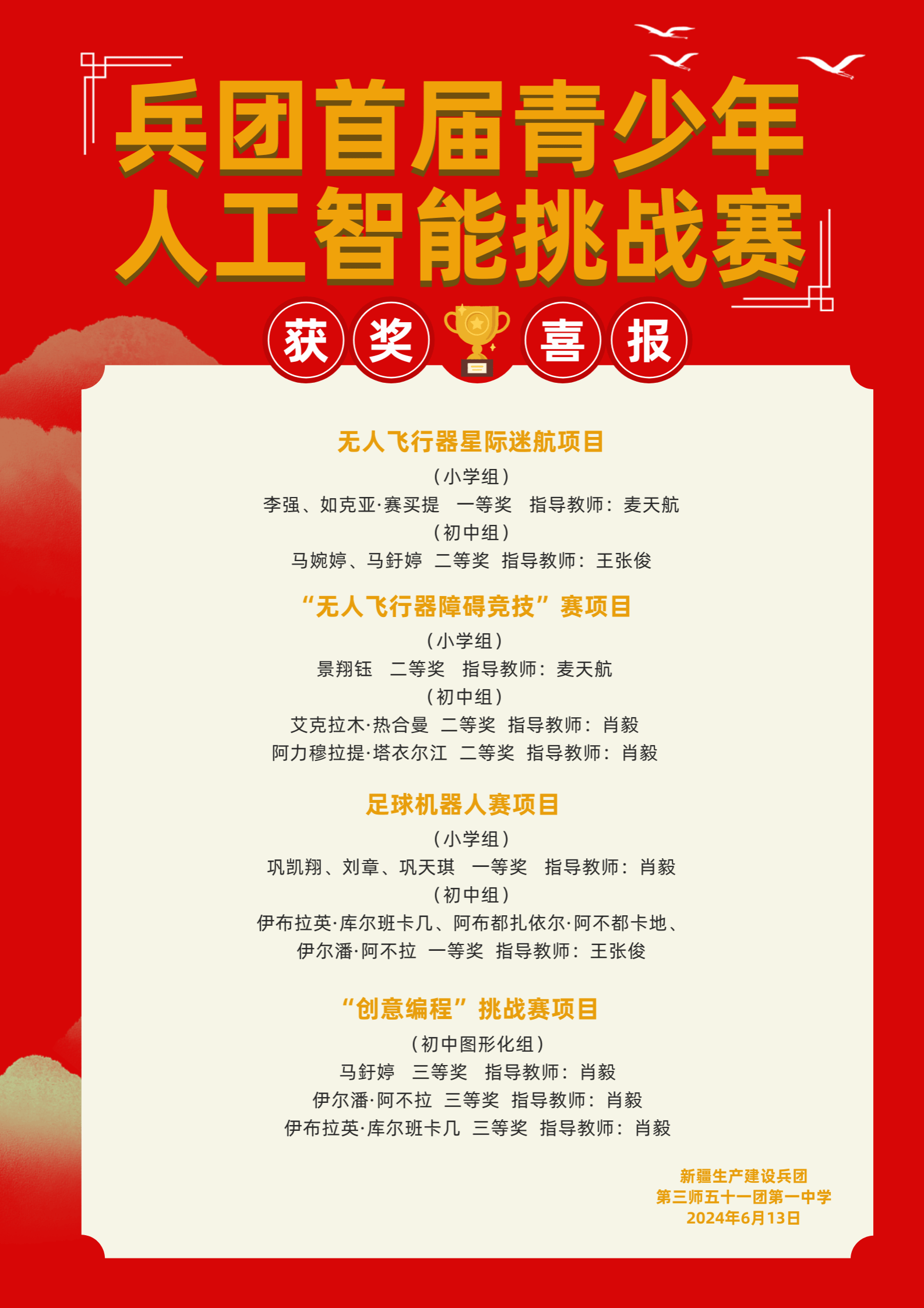 近日,兵团首届青少年人工智能挑战赛在乌鲁木齐举行,由开云与新疆对口支援地区共建的博雅科普基地选派的参赛队伍,在第四批援疆支教队领队教师肖毅、副队长麦天航和当地教师的指导下,博雅科普基地学生在本次比赛中荣获3个一等奖、4个二等奖、3个三等奖的优异成绩。