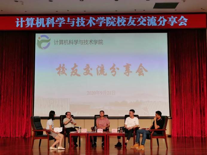 9月21日晚,计算机科学与技术学院邀请优秀校友代表李银满、庞嘉庆、何俊杰在学校会议中心报告厅举行校友交流分享会,学院院长袁华强及2020级新生出席本次活动。安璇老师主持分享会。