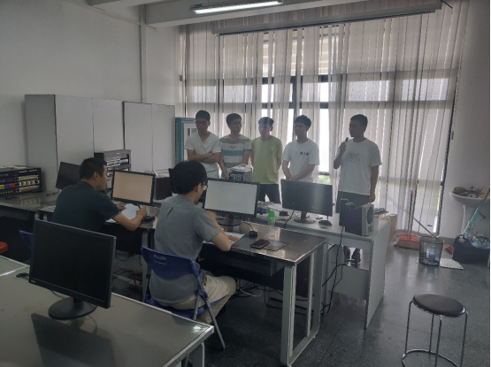答辩开始前,学院教学负责人敖欣老师召集各答辩小组成员在9A212进行了会前组会。会上,敖欣老师首先对各位企业代表的支持表示感谢,并向各位答辩专家解释了本次答辩的流程安排。为确保学生们能从实训答辩过程中进一步了解企业岗位的技术及能力需求,敖欣老师特别嘱托校外专家们多与同学们进行技术对话,多从岗位能力角度加强对各实训小组的答辩考核。
