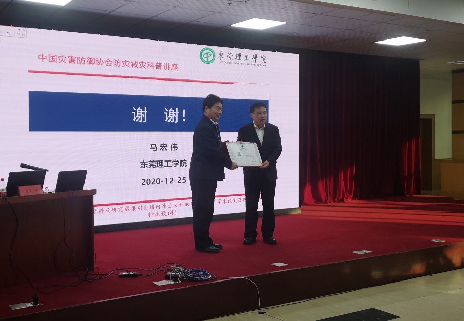 讲座结束后,中国灾害防御协会为马宏伟教授颁发了“首批高端智库专家”聘书。