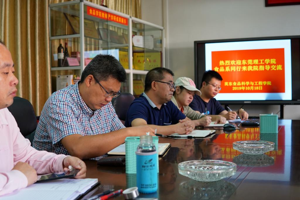 2019年10月18日,化学工程与能源技术学院食品营养与健康工程系主任刘晓珍博士,食品营养与健康工程系邹水洋副教授、陈思谦博士、王波博士、实验员叶植湘等一行组成调研团,一行人赴韶关学院英东食品科学与工程学院开展学习调研,重点就食品质量与安全及食品科学与工程专业建设、人才培养、青年教师发展、实验室建设等进行了调研和交流。