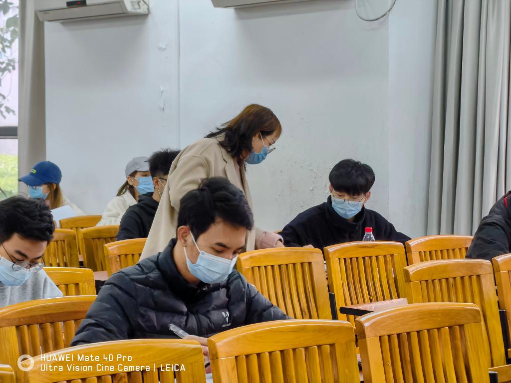 2021-2022学年第一学期期末考试临近,这是进入疫情常态化防控以来化学工程与能源技术学院组织的线下考试,根据《化学工程与能源技术学院考试管理规定》要求,化能学院成立考试巡视小组,检查各考场监考老师的监考情况,抽查学生的考试纪律。12月27日下午,化学工程与能源技术学院党委副书记李利平、副院长陈佰满,应化系教师黄相璇,团委负责人刘哲一同前往教学楼考场,巡视检查期末考试情况。