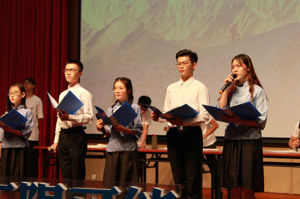 音乐打动人心,乐谱书写篇章。滕凯、陈梓炀、雷振鹏等同学演唱了歌曲《国家》《红旗飘飘》。在深情演唱之后,陈嘉威、许漫媛、白朔萌、李洁等同学带来饱含深情的朗诵《我的祖国》,李书明、龚子休、袁皓俊等同学现场创作并展示书法作品。活动接近尾声时,学校领导与全场师生一边挥舞着手中的五星红旗,一边高唱《歌唱祖国》。现场荡漾起旗帜的海浪,高低波澜,十分壮阔。在高昂的歌声中,活动圆满落幕。