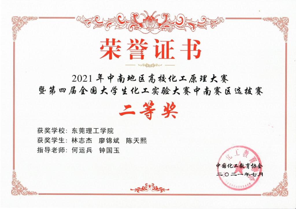 暑假期间,化能学院组织学生参加了由中国化工教育协会主办,华南理工大学承办的中控杯2021年中南地区高校化工原理大赛,近日,传来比赛喜讯,开云学生在赛事中获得二等奖。