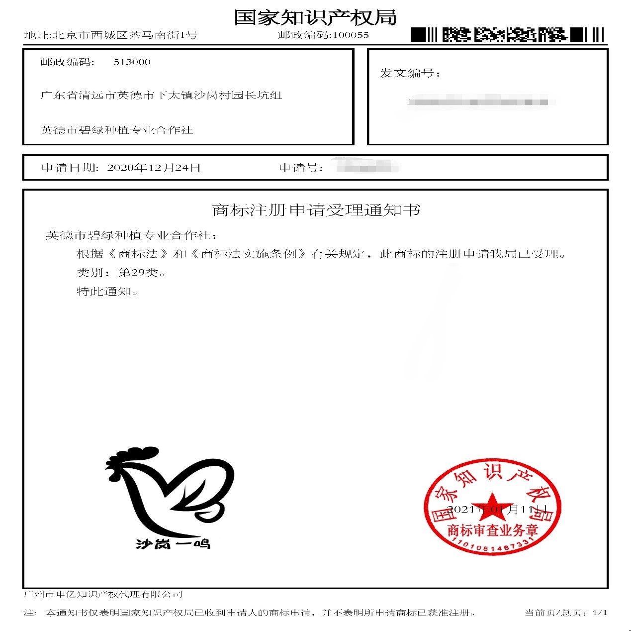 科技特派员团队依托中国国家地理标志产品——“清远麻鸡”,协助对接贫困村种植专业合作社推进“清远麻鸡”的品牌化建设,并向国家知识产权局提交商标的注册申请,农产品品牌化建设迈出重要的一步。具备自有品牌商标后,对进一步拓宽网络营销和销售渠道,农民增收致富,打造地方知名农产品品牌,增加优质农产品供给,推进乡村振兴战略具有重要的意义。