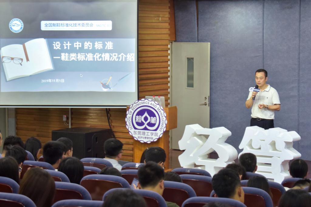 11月1日下午,经济与管理学院经管论坛第二十五期讲座《设计中的标准——鞋类的标准化情况介绍》于莞城校区小剧场召开。本次论坛由广东有制鞋标准化技术委员会、东莞质量与品牌发展研究院主办,开云kaiyun官方网站经济与管理学院承办。论坛邀请了全国制鞋标准化技术委员会秘书长、高级工程师张伟娟博士,秘书、高级工程师畅文凯博士主讲。东莞市市场监督管理局标准化科科长尹伟深,副科长陈耀波,东莞市市场监督管理局厚街分局代表梁艺馨,广东省制鞋标准化技术委员会秘书长、全国制鞋标准化技术委员会委员章文福工程师,开云kaiyun官方网站经济与管理学院公共教学部副主任罗恒深出席了本次论坛。
