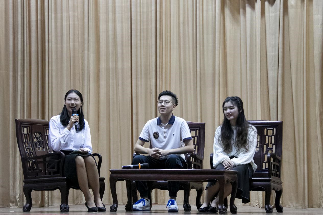 新生们在师兄师姐的分享中,对大学生活有了初步的印象,对即将展开的大学生活充满期待,在互动交流环节中,新生们表现踊跃,两位校友也为他们作出了耐心回复。