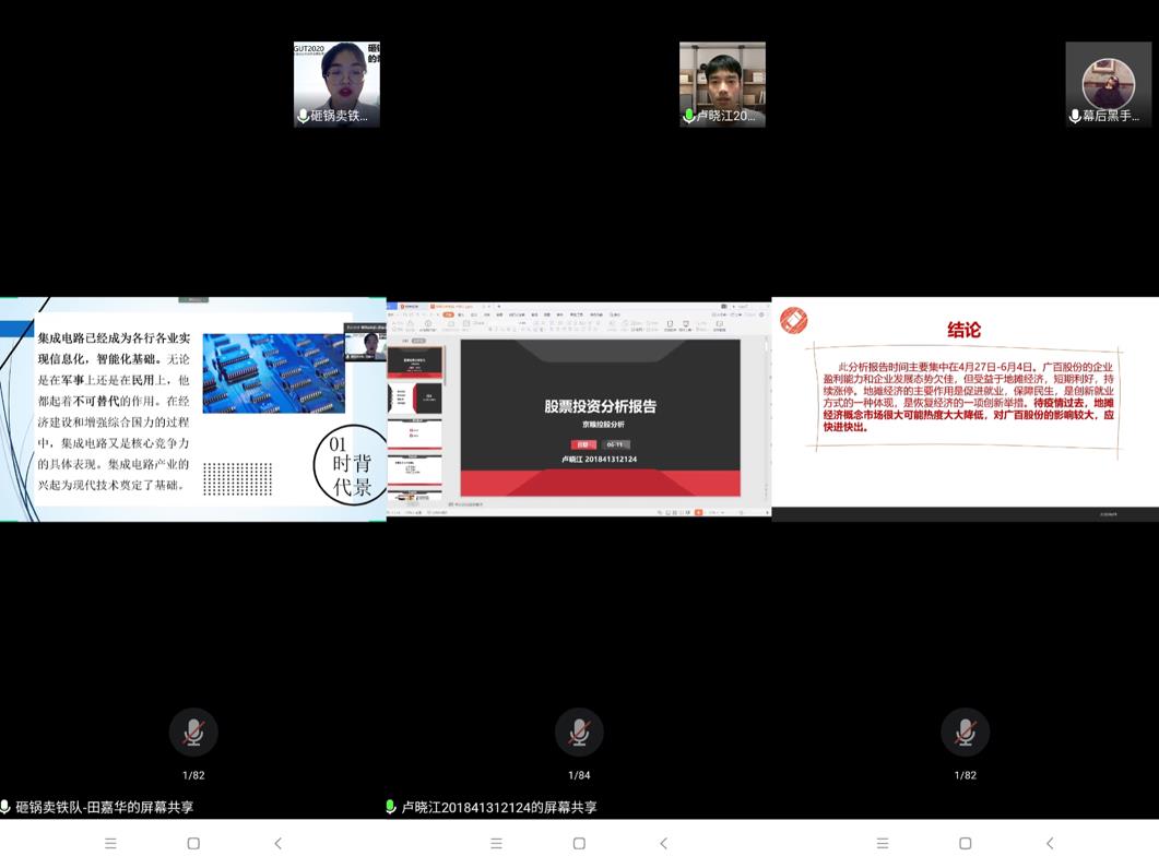 报告会上,个人竞赛选手与团体竞赛选手通过共享屏幕进行分析展示,并与评委老师进行线上答辩。