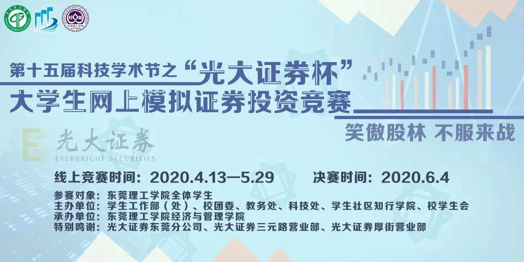 本届模拟证券投资竞赛的主题为“笑傲股林,不服来战”,通过模拟炒股的方式,为同学们提供了一个模拟实战的机会,体验投资的魅力,把课程学习中的经济知识运用到实战里。在为期一个月的竞赛中,同学们锻炼了投资决策能力、分析能力和收获了股票的相关知识。比赛受到了同学们的广泛关注和热情参与,共有1500多名学生参加。