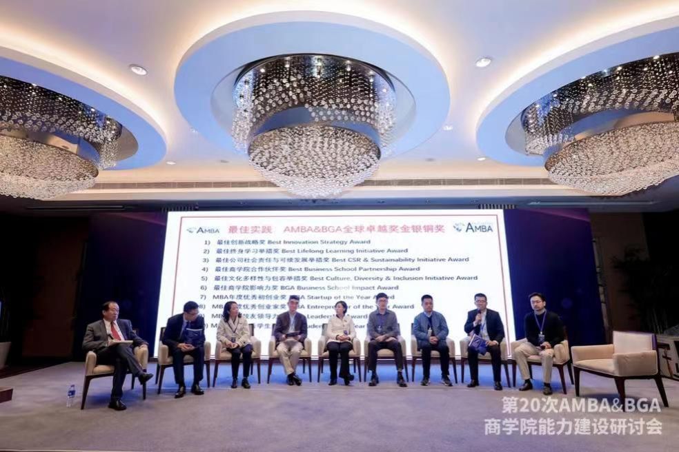 黎伟代表开云应邀在圆桌论坛环节与上海大学、东华大学、浙江工商大学、江南大学、广东外语外贸大学、苏州大学、汕头大学等兄弟院校院长共同分享与探讨商科教育的最佳实践,特别对开云获AMBA&BGA最佳商学院影响力银奖的能力建设进行经验分享。