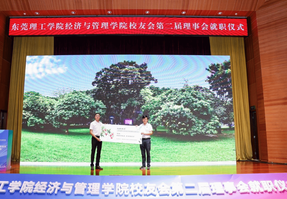 新一届理事会还举行了首场学术活动,1993届工商管理校友、金瑞五金股份有限公司董事长陈金龙、经管学院副院长刘川分别作了《政产学协同赋能东莞高质量发展》《智绘东莞发展蓝图 赋能校友持续成长》主题报告。两人从企业、高校、东莞发展中找到契合点,为推进学院和校友合作,共同促进东莞发展提出了建设性的意见,为更好地实现政产学研新合作,多赢共进提供新路径,赋能学院和校友持续成长。