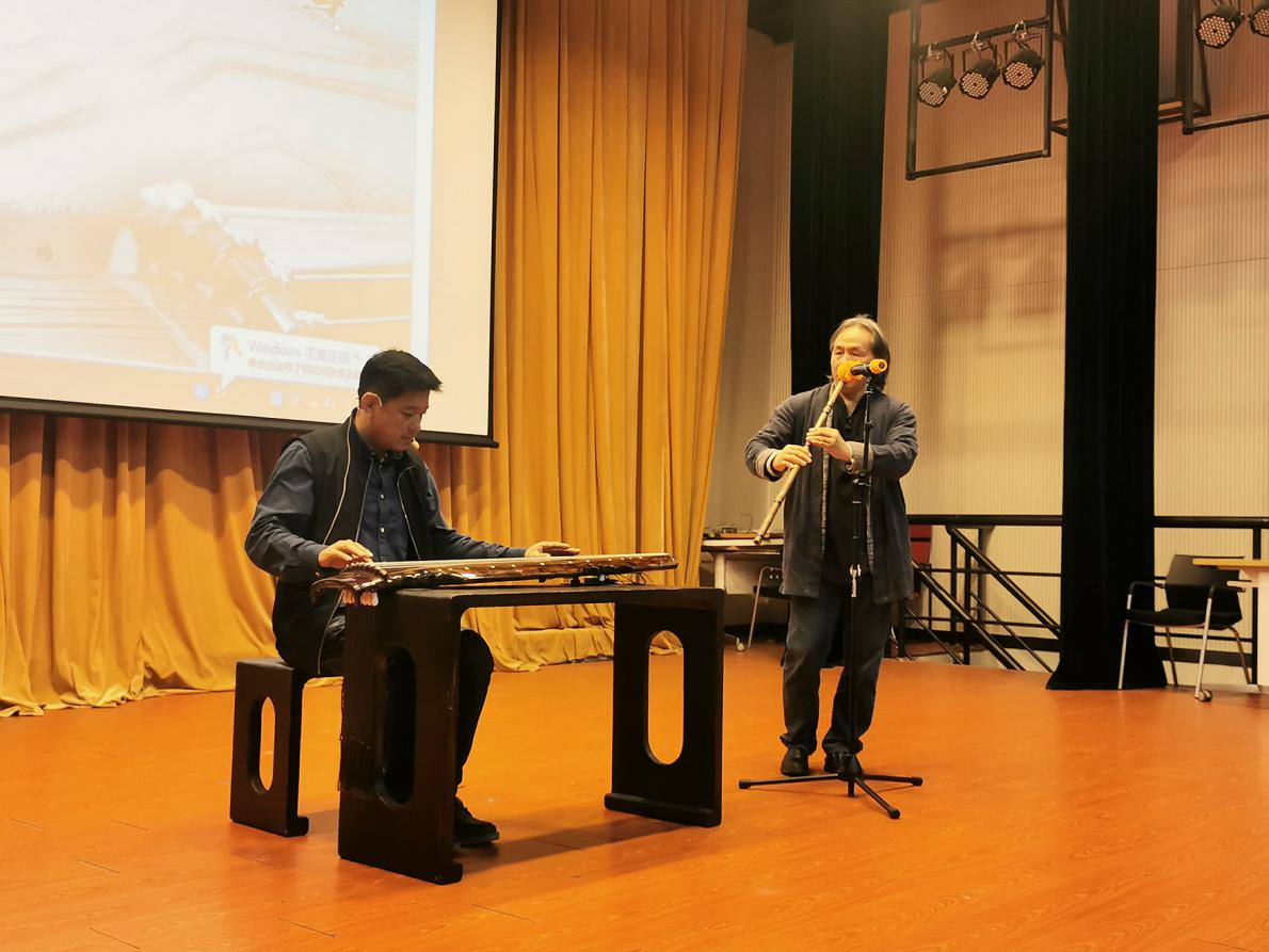 王可逊老师讲解了古琴艺术的历史渊源、发展脉络和艺术特色。古琴是中华民族最古老的华夏本土弹弦乐器,是中华传统文化的瑰宝,以其历史久远,文献瀚浩、内涵丰富和影响深远为世人所珍视。有着3000年悠久历史的古琴音乐,是中国音乐的重要组成部分,是中国传统音乐文化的代表。王可逊老师在讲解过程中,还亲身示范演奏了古典名曲《流水》,并演绎弹唱现代曲琴歌《将进酒》。古琴中的古风雅韵让学生们大开眼界,感叹中国传统音乐的神奇魔力,仿若让人进入独具东方山水意境、如诗如画的琴音世界。