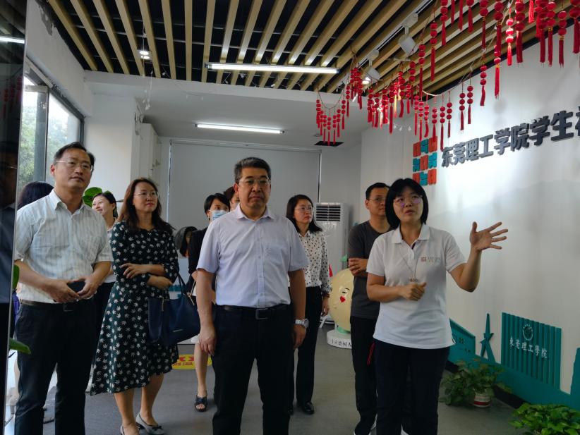 王继雨一行参观了智能制造学院、3D打印与智能制造研究中心、机器人与智能装备创新中心,走访了学生社区知行学院、莞雅社区、学生活动中心,以及文传学院融媒实验室、拓片收藏室、文创工坊、设计工坊等。
