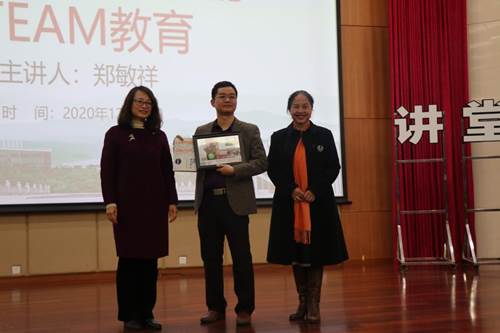 郑敏祥以东莞中学松山湖学校开展的丰富多彩的科技活动为例,向师生们阐述了核心素养、科技创新、创客、STEAM教育、项目式学习。并重点就开展STEAM教育的策略,提出要从项目设计入手、从比赛(活动)入手、从校本课程入手。对于STEAM课程的设计方法,郑敏祥分析了项目式学习设计与传统教学的不同,具体介绍了课程实施的相关流程。