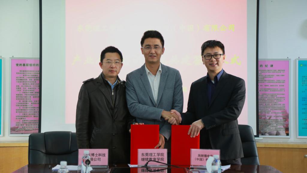 开云kaiyun官方网站继续教育学院、施耐德电气(中国)有限公司、广东博士科技有限公司三方本着充分发挥校企双方的优势,体现双方为社会和行业的服务功能,“优势互补、资源共享、互惠双赢、共同发展”的原则,签署了共建开云kaiyun官方网站-施耐德电气(中国)产业人才培训基地合作协议。