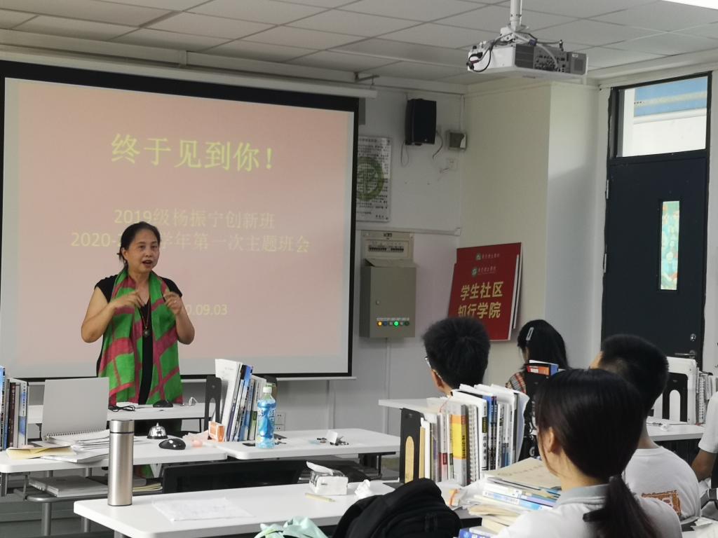 9月3日,2019级杨振宁创新班开展“终于等到你”开学第一课主题班会。学生社区知行学院执行院长苏亚玲,2019级杨振宁创新班班主任花开慧,辅导员许鼎、陈丽平参会。会议由杨班辅导员陈丽平主持。
