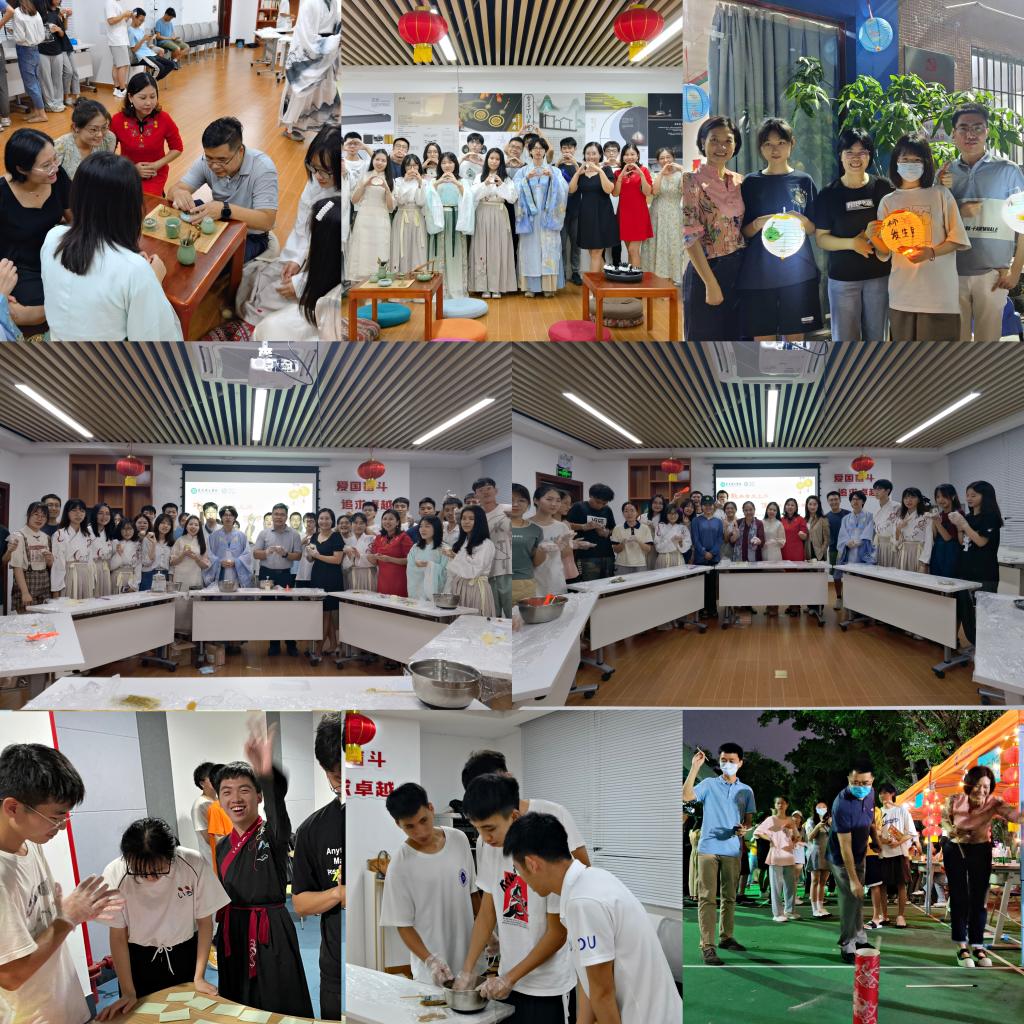 中秋节当天,两校区7个社区分院分别开展了中秋系列活动。莞馨分院举行了中秋文学作品赏析活动,莞逸分院举行了“画好月圆”中秋主题绘画活动,莞华分院举行了中秋祝福卡片制作活动,莞雅分院举行了“明月悬空,花灯缀夜”中秋花灯制作活动,莞博分院举行了“明月知我意,彩灯寄远志”灯笼彩绘活动,莞思分院举行了冰皮月饼烘焙教学活动,莞和分院举行了手工绘画灯笼活动。