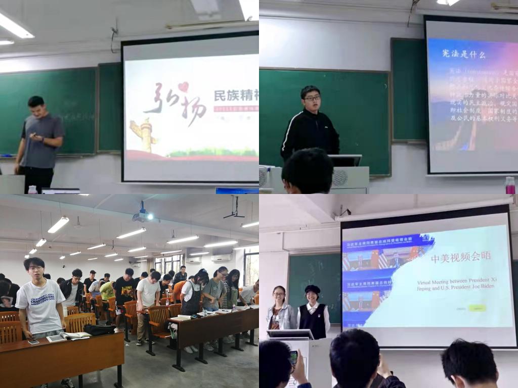 在“课间5分钟”主题学习中,每天一名同学上台分享。同学们积极准备,协同合作,从内容选取、ppt 制作及课间讲演,实现全员参与,同学们的组织协调能力、语言表达能力得到锻炼和提升。在学习分享中,同学们选题取材丰富,有的紧跟时事热点,讲述中美领导人视频会晤内容及意义;有的分享学习心得,由浅入深分析马克思主义中国化进程;有的交流情绪处理技巧……在表达形式上,灵活多样,如在《读写译》课程的分享中,同学们用英文讲演时事政治,在学习时政知识的同时提高英语口语表达能力。