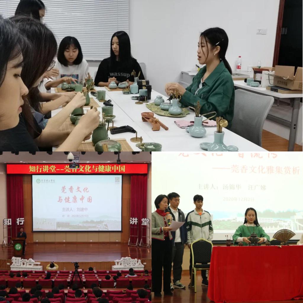 莞香文化协会在本学期已开展多场莞香文化传承活动,在校内举办了两场香道知识体验小课堂;开设两场线下莞香知行讲堂,参与学生达829人次。首届东莞市莞香文化研究会会长刘建中教授、省级非遗传承人汤锦华老师、君临沉香创始人、中国管理科学院香文化研究所特聘讲师汪广娣担任主讲嘉宾,讲堂反响热烈。为使莞香文化辐射周边中小学,协会还于11月7日对教育学院义教队进行香道培训,推动“莞香进校园”“莞香进课堂”。