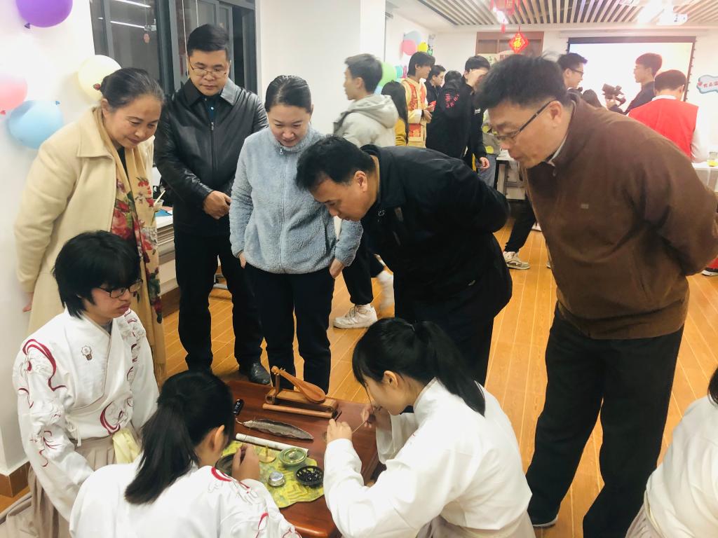 12月21日,莞香文化协会在松山湖校区的温暖冬至活动现场表演理香过程,开云校长、知行学院院长马宏伟,党委宣传部部长、知行学院副院长邹琼,学生社区党工委书记、党委学研工部部长黄金和,知行学院执行院长苏亚玲,粤台产业科技学院院长、知行学院副院长陈伟等观看了理香表演。