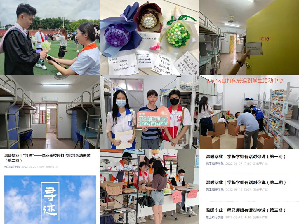 除了以上常规品牌活动外,知行学院还举办了“寻迹”毕业季校园打卡纪念活动,毕业生通过在指定地点拍照打卡的方式,定格校园饱含珍贵回忆的地点,写下自己的感受,完成“寻迹”之旅;开展了“落‘纸’生花,启梦远航”毕业季手工制作活动和“青春毕业,温暖启程”线上毕业祝福征集活动,大家制作手工花束送给毕业同学,并送上诚挚的祝福;推出8期“学长学姐有话对你讲”内容分享,邀请学生社区2018级学生党员给2021级同学回信,帮助大家积极开展自我对话、明晰奋斗方向,珍惜大学时光,努力成长为堪当民族复兴重任的时代新人。