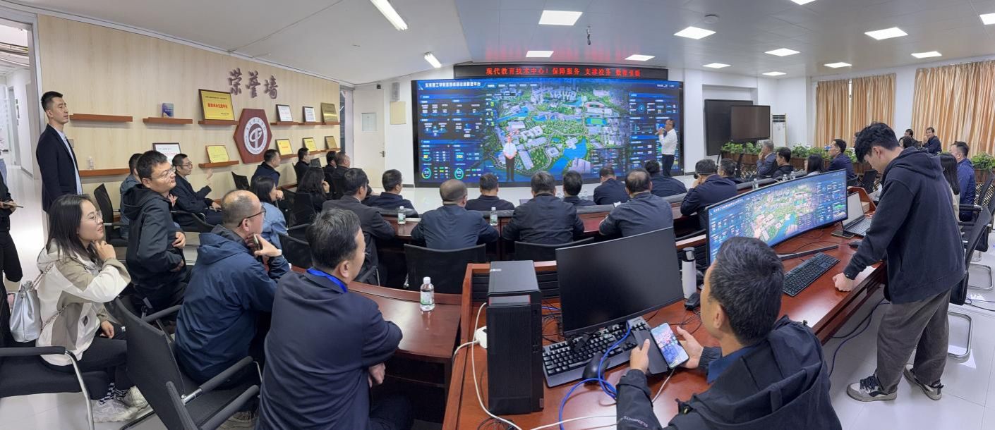 参观过程中,魏文红向调研团详细介绍并同步演示智慧校园运营平台(IOC)的建设使用、功能开发等情况。该平台是学校深入贯彻国家教育信息化战略、积极推进智慧校园建设的重要成果,也是学校进一步健全完善一流的智慧教育服务管理体系的一项重要举措。平台基于数字孪生核心理念,深度融合物联网、大数据、人工智能(AI)及三维可视化等前沿技术,通过联动贯通校内各大业务系统,对两校区的人、系统、设备、能源、校园空间等要素统一纳管,达到系统数据可融合、要素状态可视化、关键业务可监督、紧急事件可管控,形成数据“集中化”、服务“智能化”、管理“可视化”的创新性服务体验。
