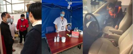 图为配合市食药监局检查、提供保健服务、检查车辆