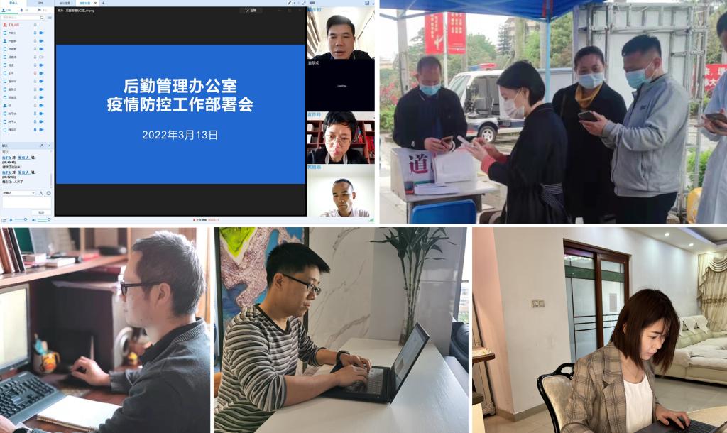 线下线上相结合,后勤同心共抗疫。后勤领导班子、科室、中心(所)负责人走访现场,积极配合检查组开展工作;通过云端统筹后勤保障工作、制定各类紧急预案等,时刻都不敢松懈,没有下班时间,更没有下班的状态。