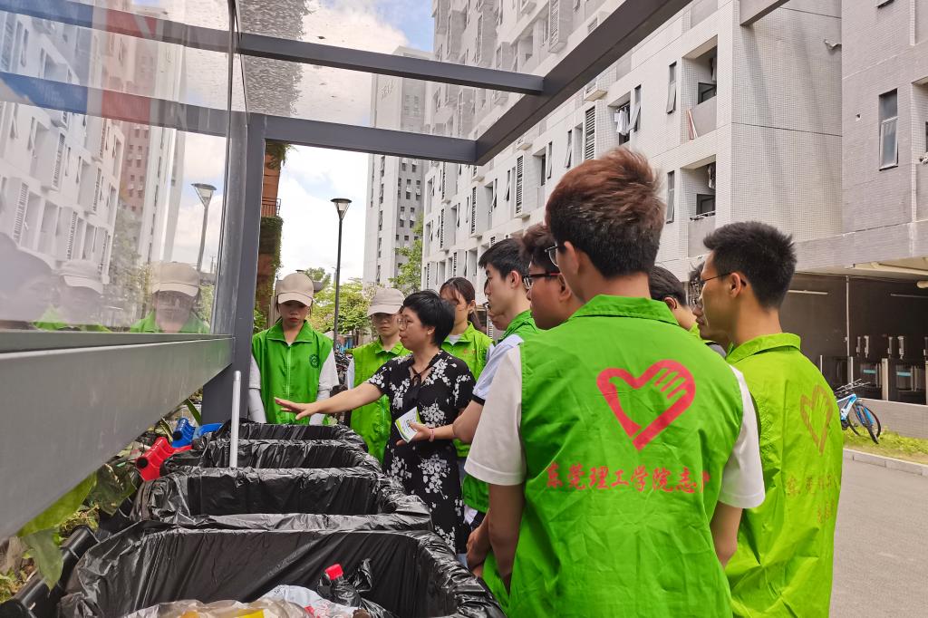 5月以来,后勤管理办公室以莞博和莞雅两个社区作为试点,撤走宿舍楼门口不符合规范的露天垃圾桶,主动联系校志愿服务中心、知行学院社区志愿站、学生自律会、莞逸社区学生党支部等多个学生部门,多批次招募培训学生志愿者,通过教工党员带领、学生志愿者带头,按4个垃圾投放高峰时段安排在宿舍楼门口引导学生进行分类投放,从行为引导和规范分类入手培养学生良好的垃圾投放习惯。