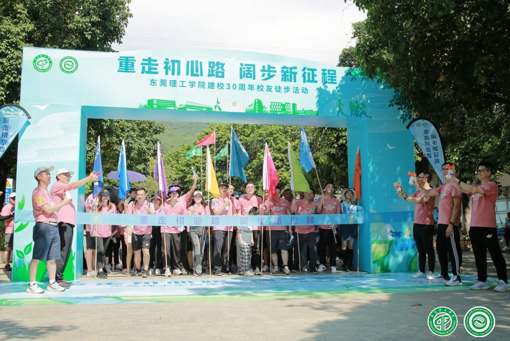 当天,参加徒步的既有1992级的老校友,也有刚刚毕业的新校友,有抱着婴儿的校友伉俪,也有共同在湾区奋斗的同班同学。随着发令号起,校友们在开云kaiyun官方网站校旗带领下,迈着雄健而欢快的步伐,高喊“祝福母校30岁生日快乐”“母校生日好、莞工水平高”等口号,开启了拥抱自然、走出健康、庆祝建校30周年的徒步活动。喜悦的表情洋溢在校友的脸上,欢声笑语萦绕在队伍的上空。
