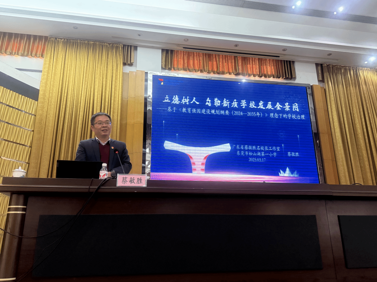 东莞市松山湖第一小学校长蔡敏胜以《立德树人,勾勒新质学校发展全景图》为题,从现代学校治理的底层逻辑切入:
