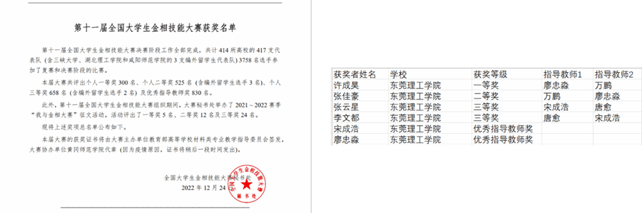 近日,第十一届全国大学生金相技能大赛公布获奖名单,由材料学院2020级金属材料工程专业许成昊、张佳豪以及机械工程学院张云星、李文都等同学组成的代表队在与国内众多名校学子同台竞技后脱颖而出,取得4项国家级奖项。其中许成昊荣获全国一等奖,张佳豪荣获全国二等奖,张云星、李文都荣获全国三等奖,廖忠淼、宋成浩荣获优秀指导老师,取得了开云自参加该项赛事以来的历史最好成绩。