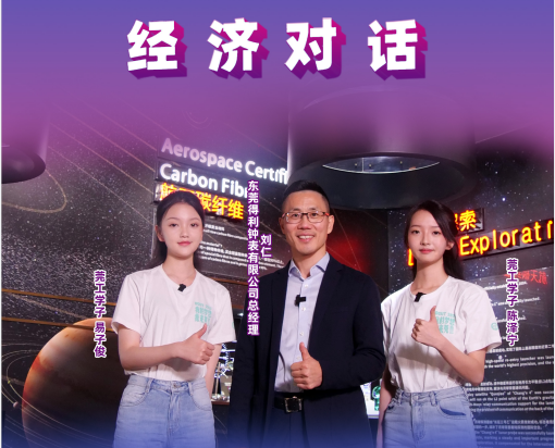 “得利钟表集团1979 年在香港创立,1989 年在凤岗镇雁田投资设厂,2016年在瑞士成立工程创新中心和制造工厂。近年来聚焦于品牌打造,与中科院国家授时中心合作共建钟表文化时间科学馆,形成发展新亮点......” 1996届应用化学专业校友刘仁热情地向易子俊、陈泽宁同学介绍得利集团的文化,同时针对钟表本土品牌现状与未来良好发展趋势发表观点。刘仁表示,年轻一代消费群体对国外品牌的粘性明显降低,本土品牌要坚持用适当的方式和产品满足消费者需求,以合理价格提供优质服务,相信国货品牌能成长起来,且在未来国际化发展中,走出中国,面向全球。
