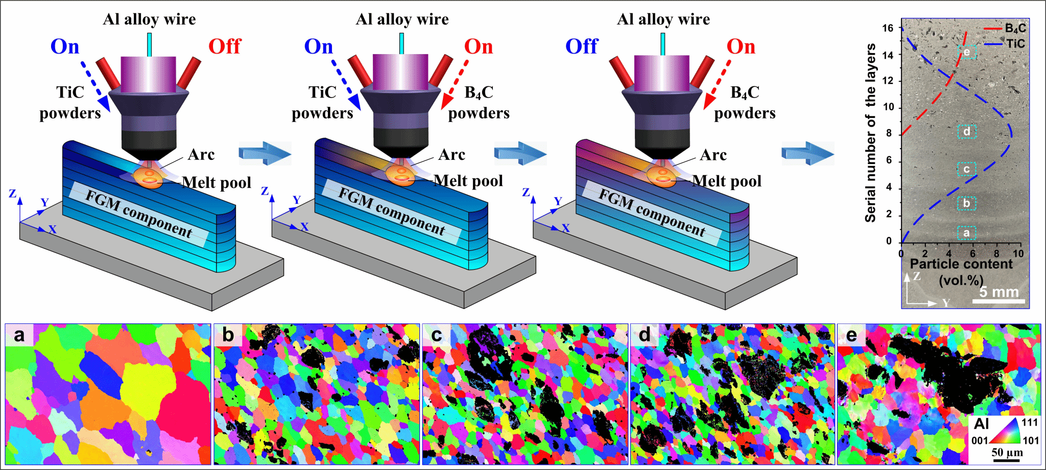 丝-粉-弧增材制造TiC-B4C颗粒增强铝基复合材料双梯度结构的工艺原理和组织形貌