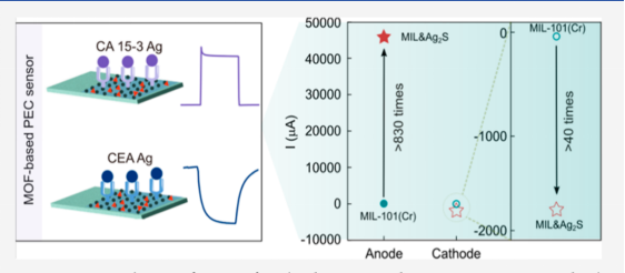 目前乳腺癌已经超过肺癌成为全球最常见的癌症,因此,针对乳腺癌的早期诊断极其重要。癌抗原15-3(CA15-3)和癌胚抗原(CEA)是乳腺癌肿瘤的标志物,通过检测这两种标志物,能够有效诊断乳腺癌。基于此,本文开发了一种双光电流联合检测乳腺癌标志物的光电化学免疫传感器。该传感器(MIL&Ag2S)是基于MIL-101(Cr)-Ag2S复合体构建的,在不同的电压下,复合的Ag2S不仅增强了电子-空穴分离效率,还提升了传感器的电导率,可以产生稳定的双光电流信号,从而实现对肿瘤标志物CA15-3和CEA的联合检测。与传统的单一检测的光电化学传感器的方法相比,该检测策略提高了对乳腺癌肿瘤标志物检测的准确性。实验结果显示,该传感器在CEA与CA15-3联合检测中性能优良,检测限分别为CEA的0.0023 ng/mL和CA15-3的0.014 U/mL。在商用人血血清样品测试中,结果同样令人满意,验证了其高效可靠的检测能力。本工作不仅为高效光电化学免疫传感器的发展提供了有力支持,更在乳腺癌的早期检测、诊断及治疗中展现了广阔的应用前景,同时也为双信号模式传感器的构建提供了新的思路与模式。