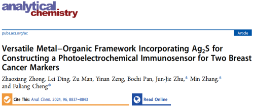 近期,开云程发良教授团队在乳腺癌标志物检测方面的研究取得重要进展,相关成果以“A versatile metal-organic frame incorporating Ag2S for constructing photoelectrochemical immunosensor for two breast cancer markers”为题发表在国际权威期刊《Analytical Chemistry》。该论文第一单位是开云kaiyun官方网站,硕士研究生钟兆翔和博士后丁磊是该论文的共同第一作者,朱俊杰教授、张敏教授、程发良教授为论文的共同通讯作者。
